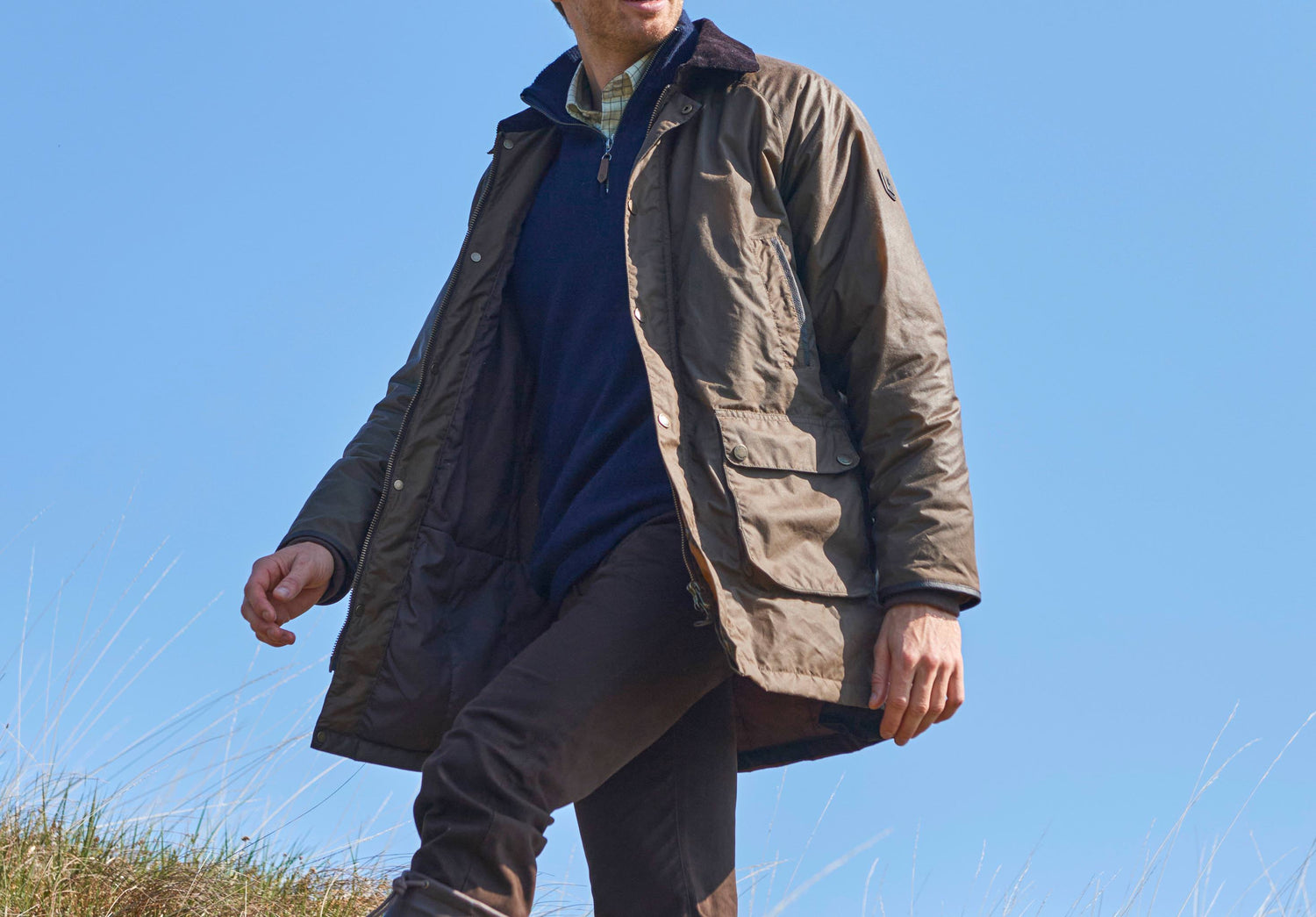 The Brunswick combines traditional wax jacket finish with a longer cut offering extra protection. A contrasting corduroy collar coordinates with leather trim and brings a smart finish to classic country style while large patch pockets allow for city break essentials, a good supply of dog treats or perhaps a Dubarry hip flask to take the nip out of the autumnal air.