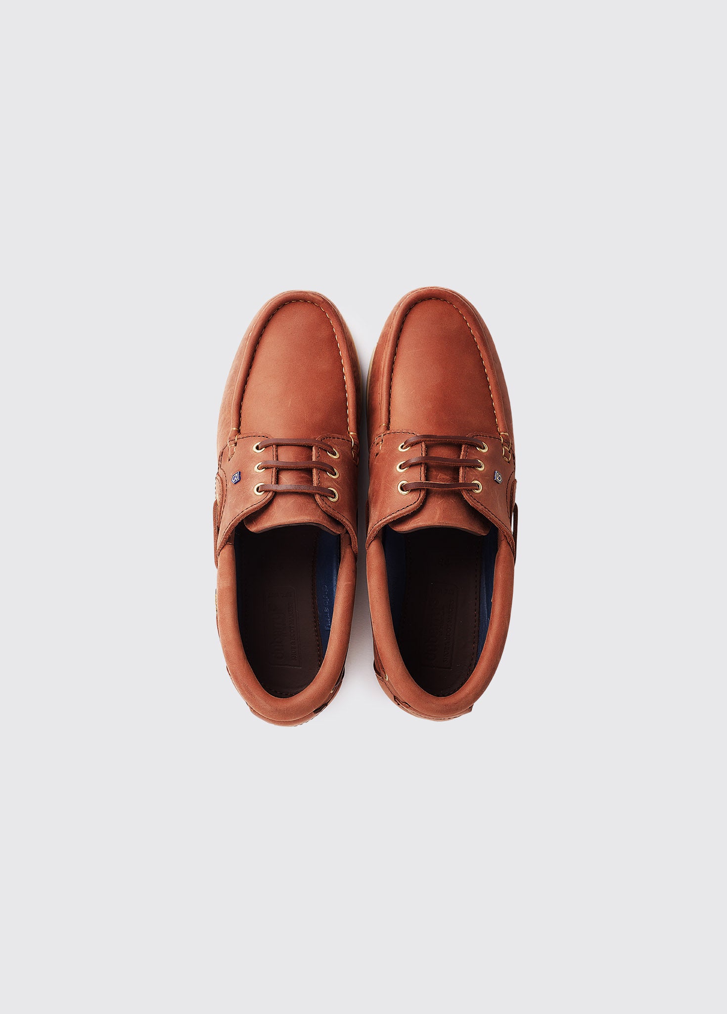 - Three-eye tie with full leather lace system for custom fit at instep and topline Heritage Dubarry trim that includes signature port and starboard flash details
