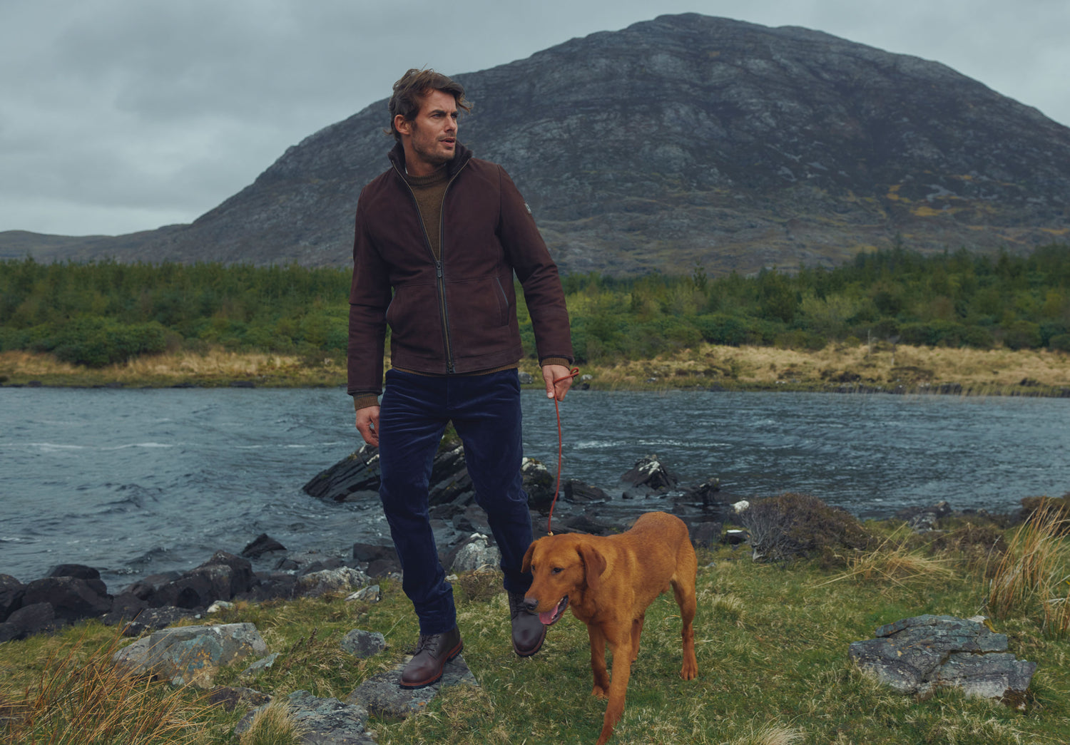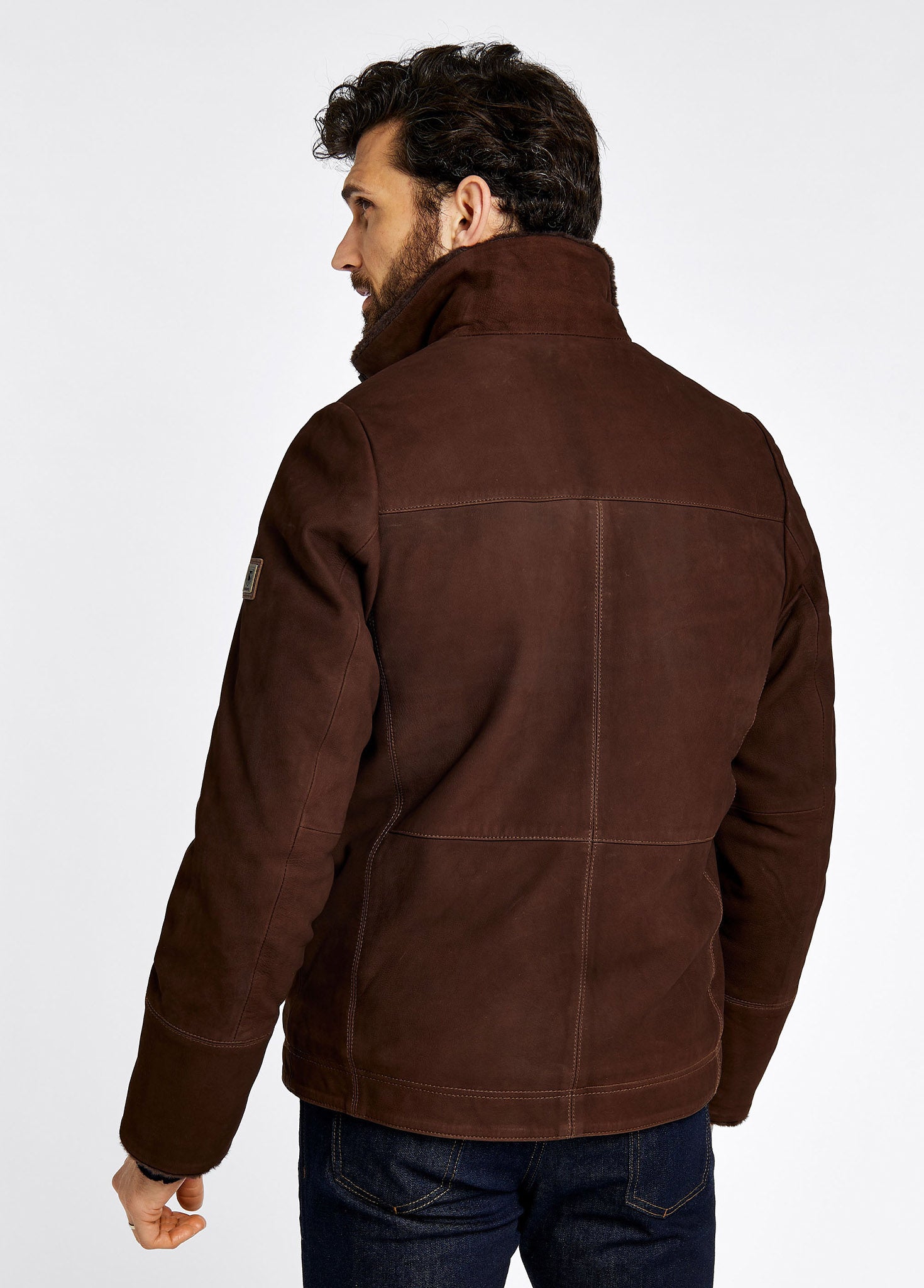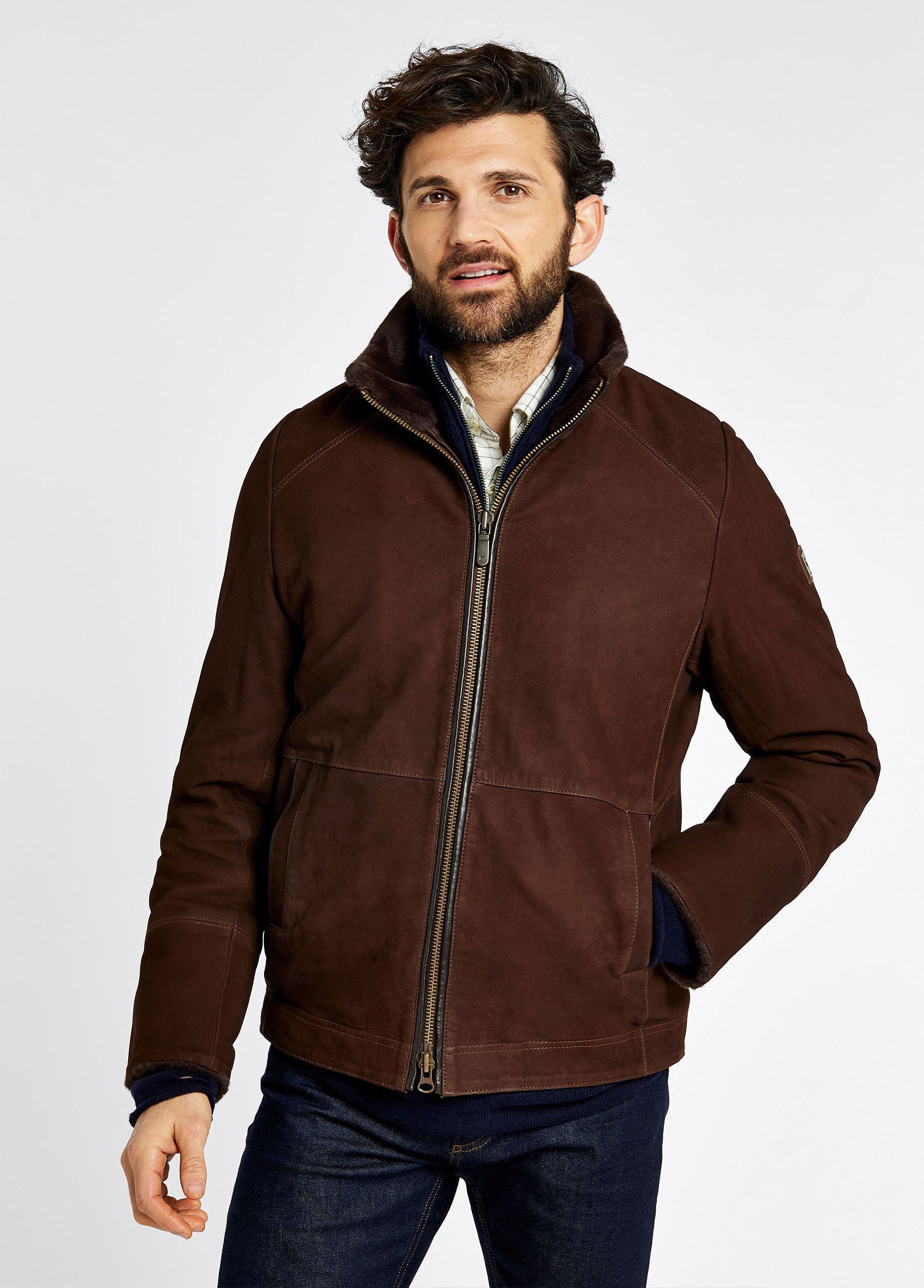 Merriman men’s sherpa-lined leather jacket in walnut