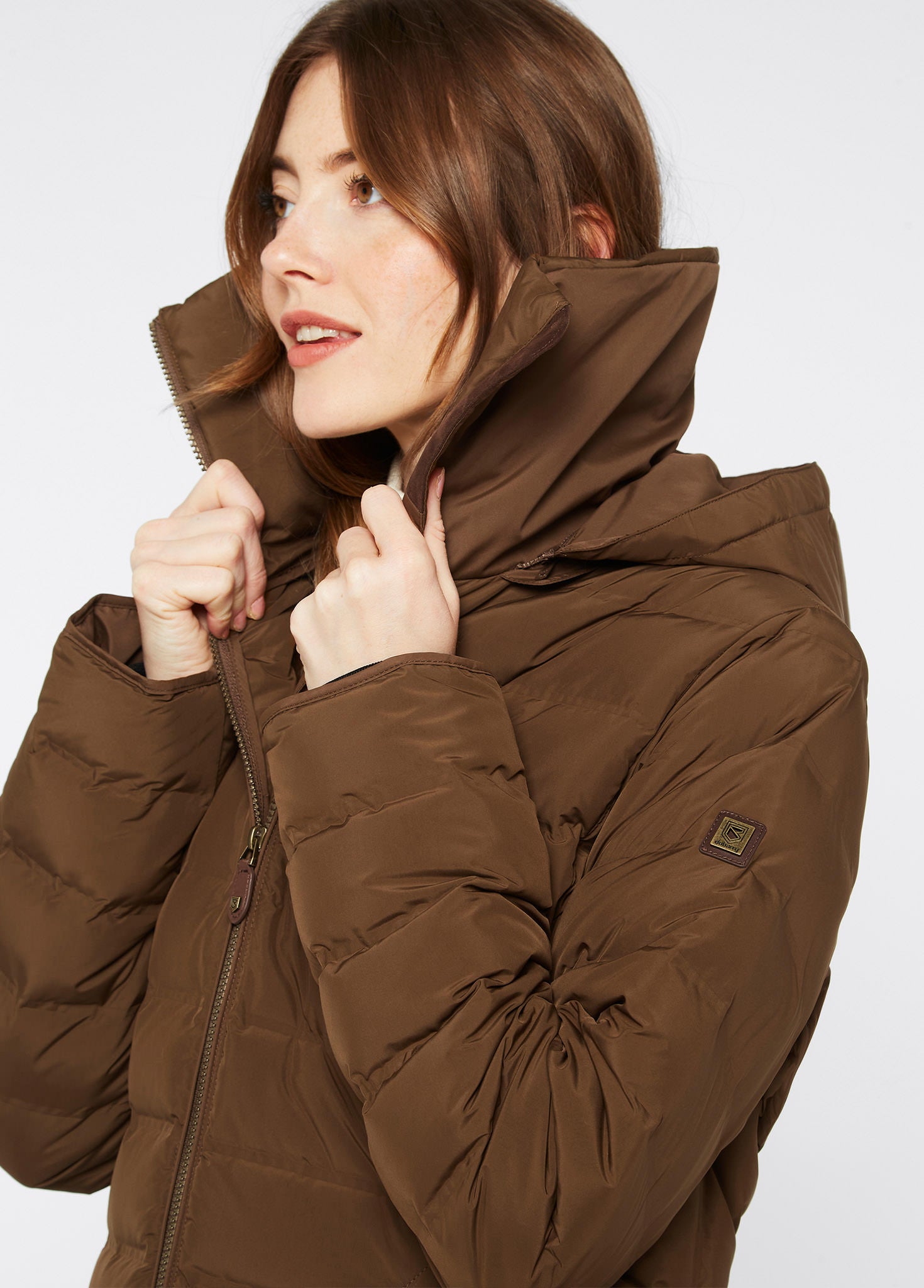 Like wrapping in your duvet to step outside, only better. Our Meyers quilted coat is packed with ethically sourced down and feathers from its deliciously tall collar to its hemline. Equipped with storm cuffs and hand-warming pockets this is the jacket to hunker down in against the chilliest of winter mornings and face your day with a warming smile.