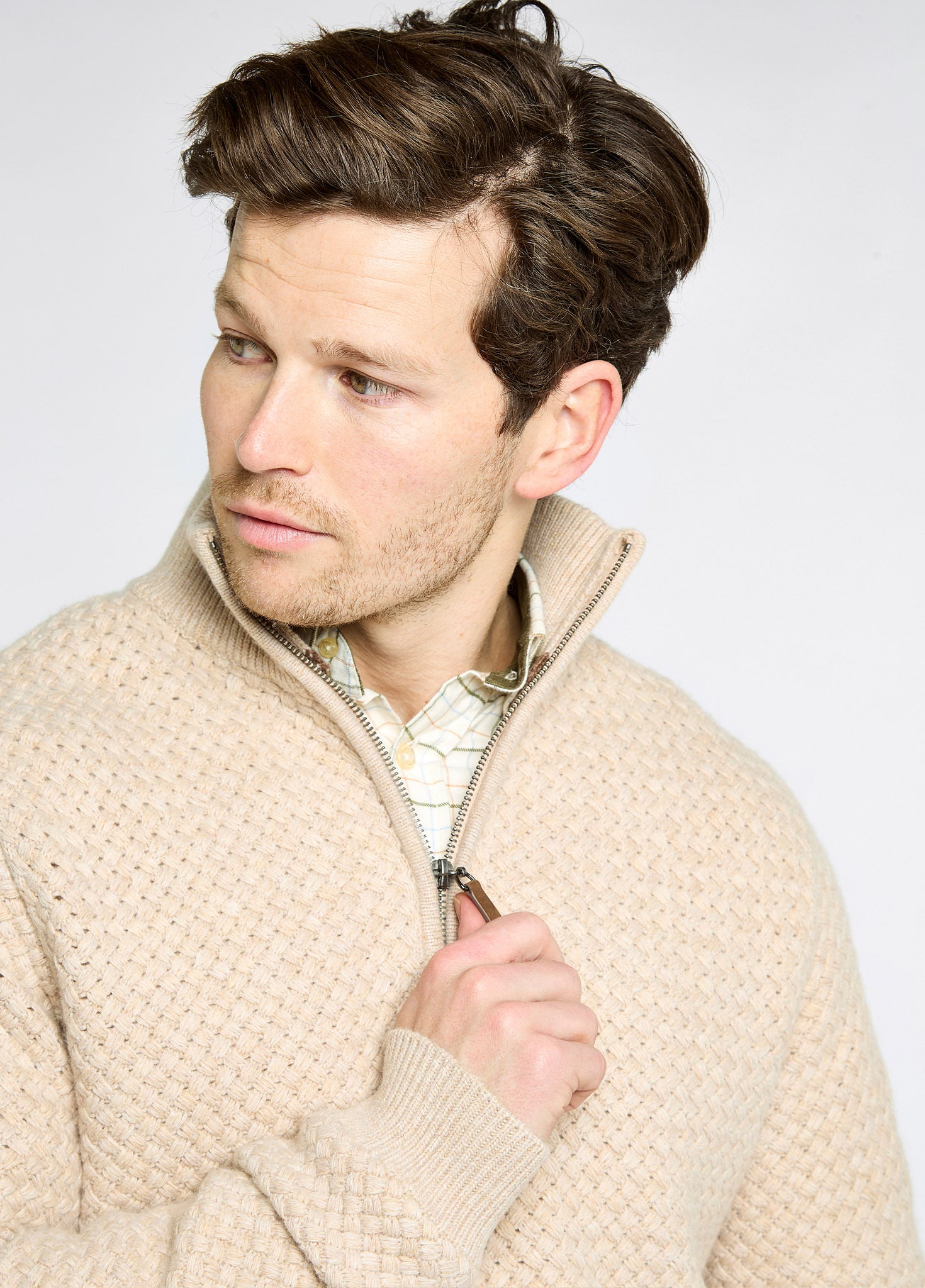 Our Power sweater combines a soft blend yarn with an intricate stitch giving warmth and comfort with a refined touch. If you’re office bound, out for supper or settling into a smart shoot lodge, the basket weave knit elevates this from basic winter woolly to smart sweater.