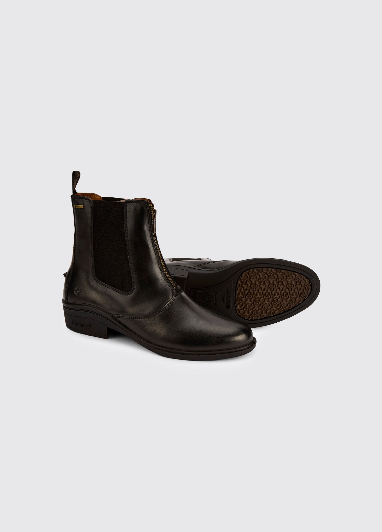 A true front-zip paddock boot built on our new stirrup-safe sole unit. Our combination of DryFast-DrySoft™ leathers and GORE-TEX lining mean that they are fully waterproof and breathable and packed with practical features such as a spur keeper at the heel, and optional removable footbed. Wear with the Dubarry half chaps for everyday in-saddle performance or just take them for a stroll.