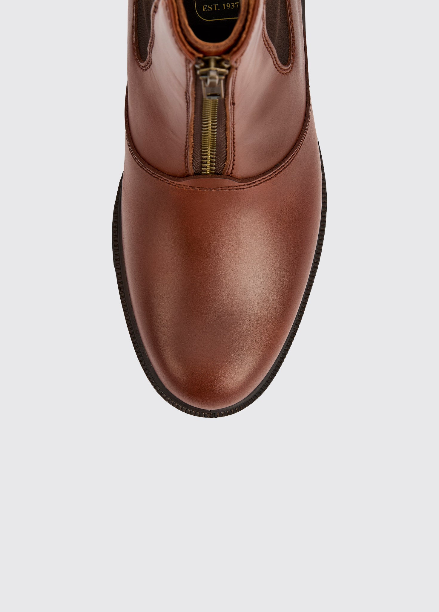 A true front-zip paddock boot built on our new stirrup-safe sole unit. Our combination of DryFast-DrySoft™ leathers and GORE-TEX lining mean that they are fully waterproof and breathable and packed with practical features such as a spur keeper at the heel, and optional removable footbed. Wear with the Dubarry half chaps for everyday in-saddle performance or just take them for a stroll.