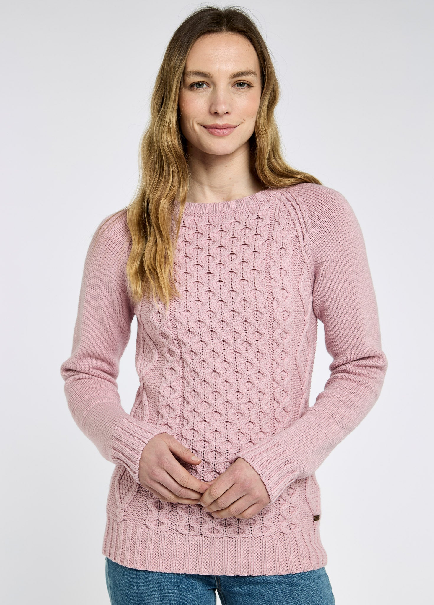 - Traditional Aran stitches representing Irish heritage