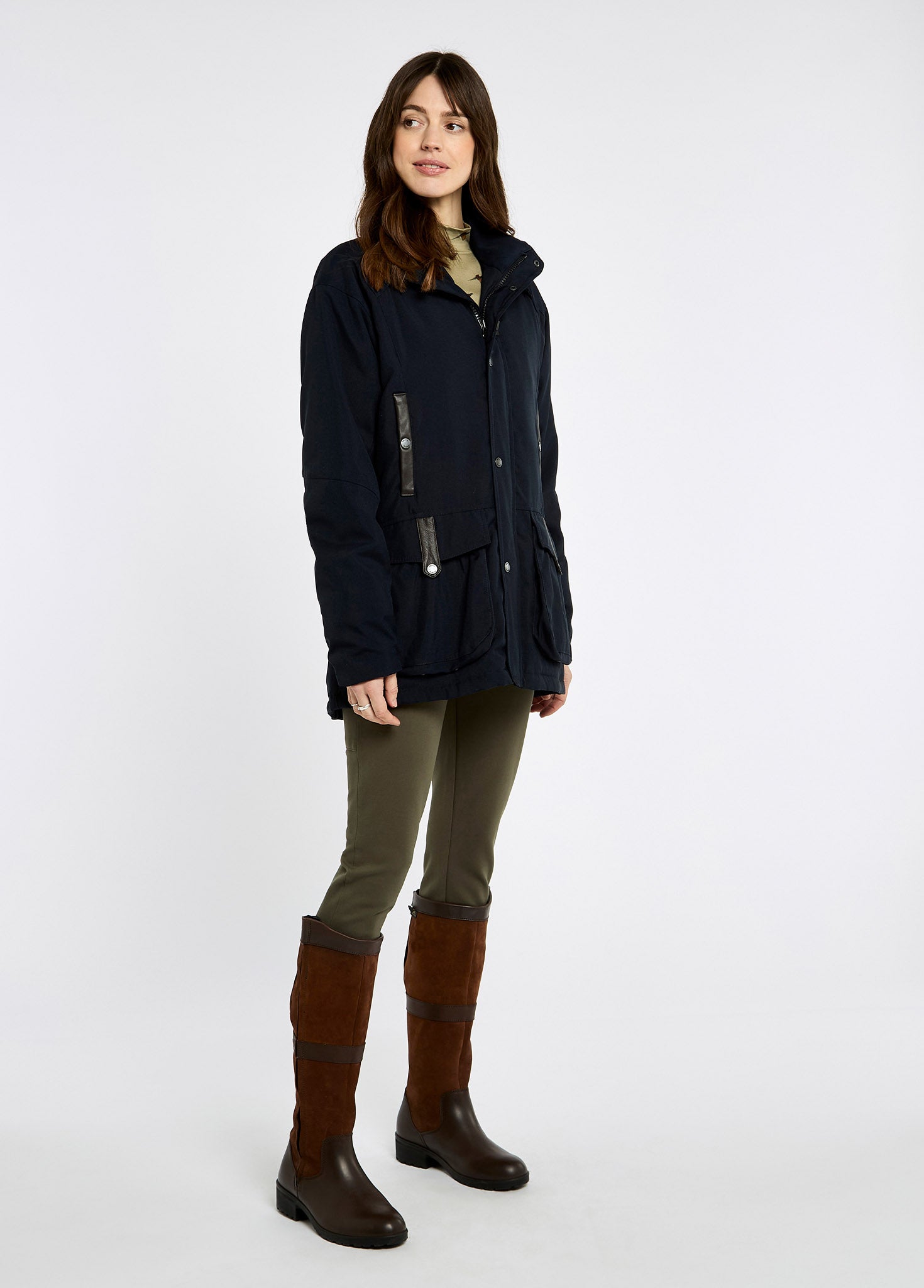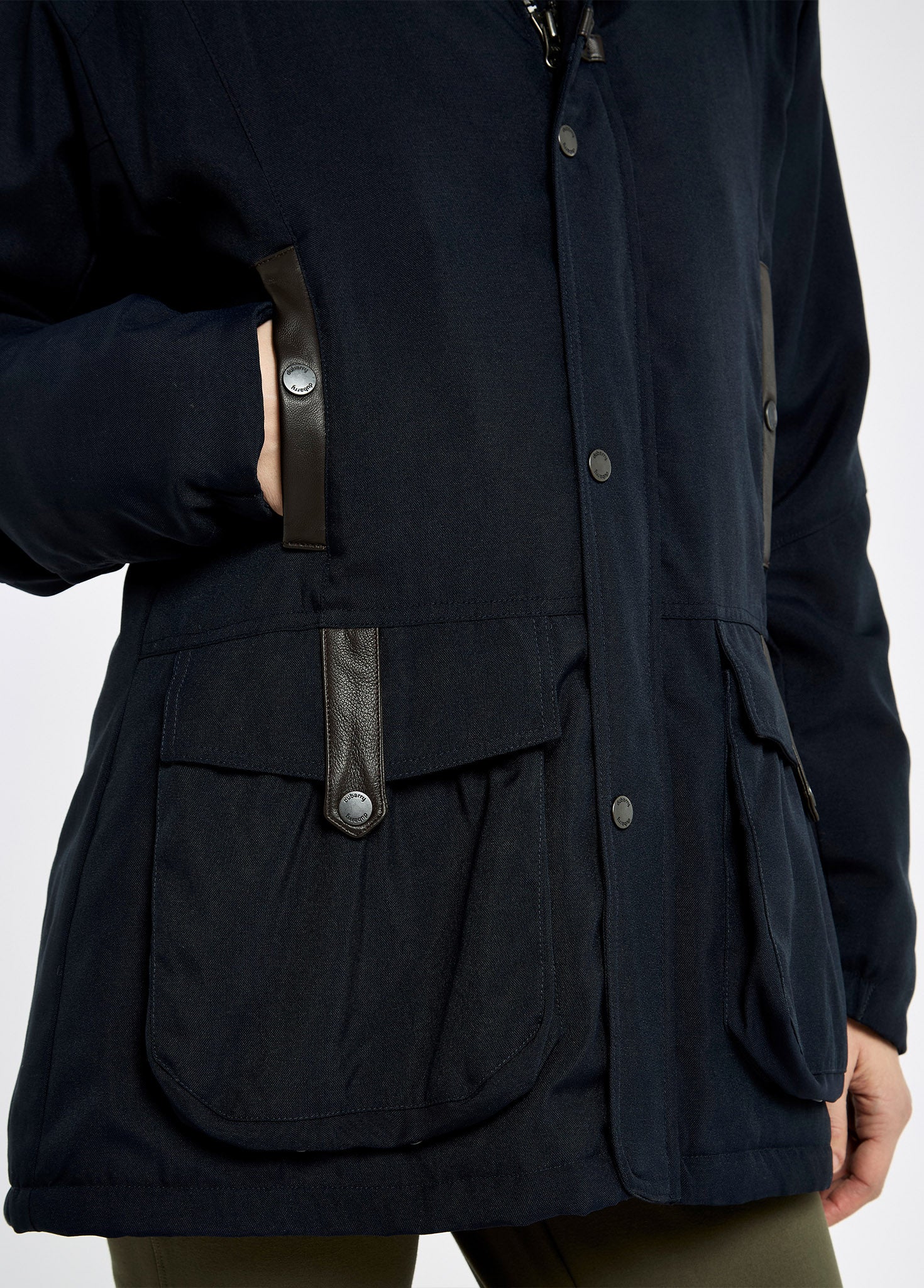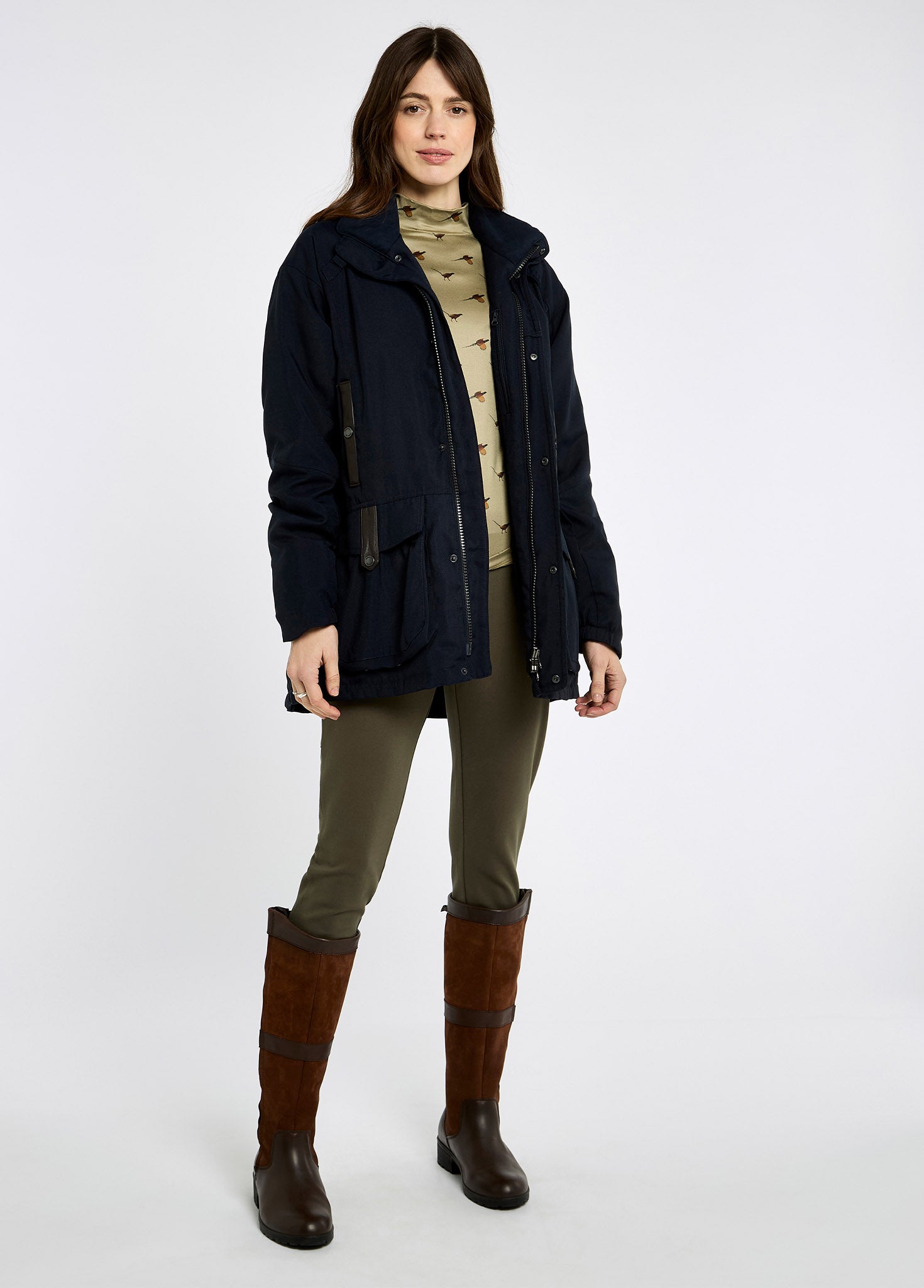 A performance gem, the Sherwood coat is waterproof and lined for wintery conditions. Ergonomic sleeve design for maximum range of movement ensures comfort and flexibility, while generous interior and exterior pockets stow away all manner of treats. Leather trims give a subtle polish to the nipped silhouette. Slip over a knitted gilet and match with your honeysuckle jeans for classy country style in an instant.