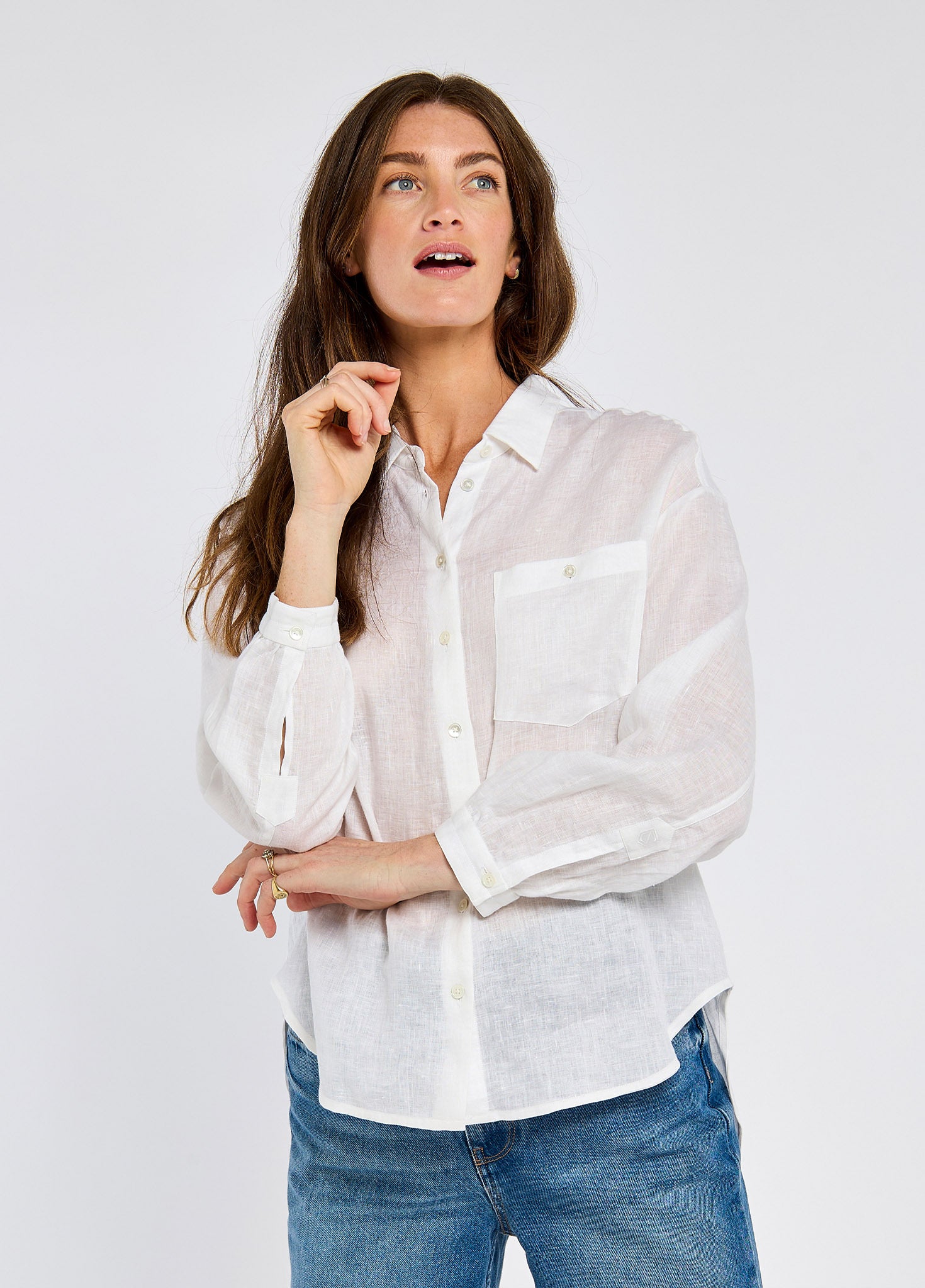The must-have shirt for balmy days, this relaxed fit 100% linen shirt is oversized and airy for true summer comfort. A dropped shoulder gives a relaxed feel and gathered narrow cuffs naturally lends themselves to casually rolled sleeves. The perfect choice for lazy beach days, you could as easily dress it up with an Albany linen skirt for a smart summer brunch, or summer garden drinks.