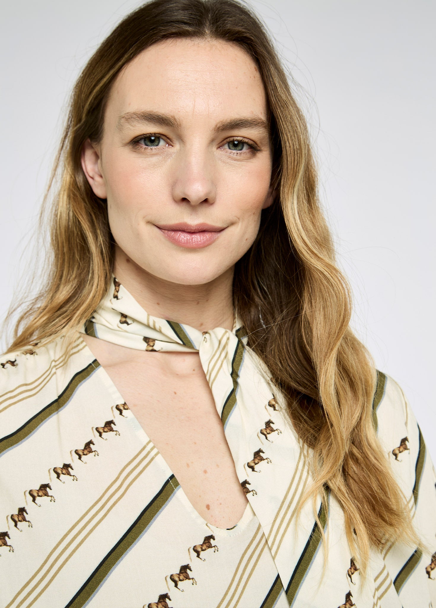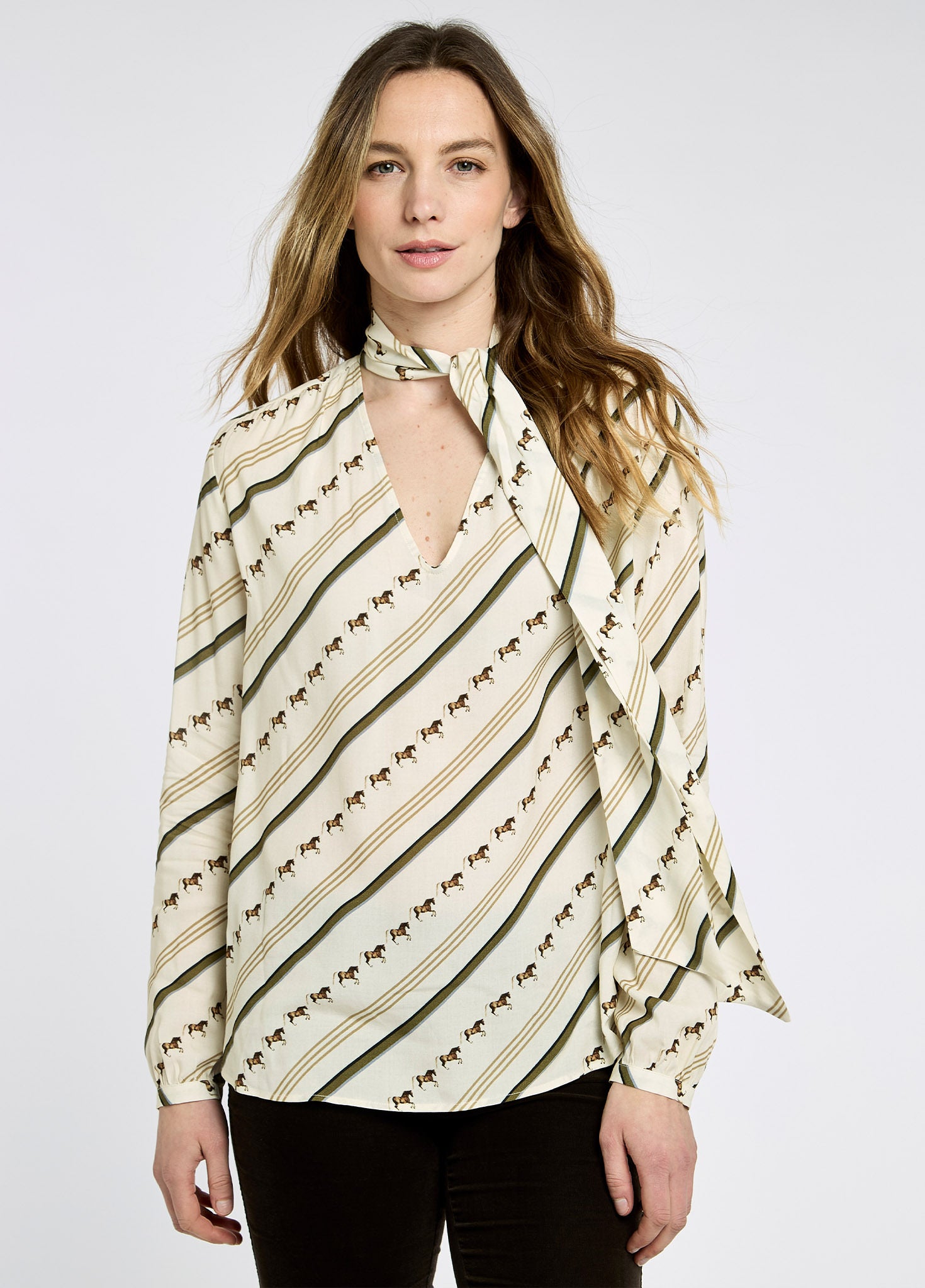 Bring a touch of vintage glamour to your wardrobe with our tie neck equestrian print Sweetalison blouse. Refine a denim and flat boot combination or team with tailored tweed and a Sullivan knee-length belted suede skirt for a head turning, elegant profile.