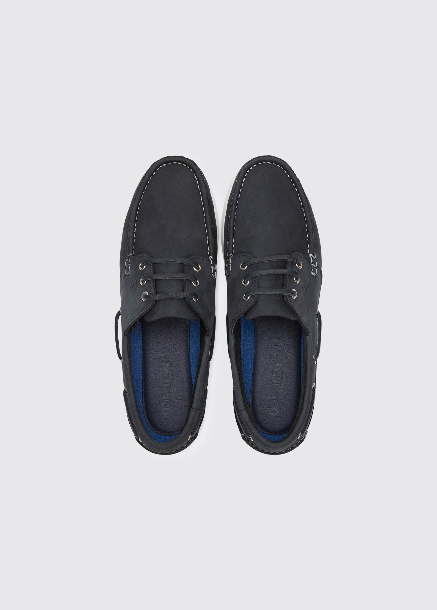 Our water resistant, leather Tavira deck shoes are a three eye-tie moccasin constructed with a dubarrylite™ EVA sole unit. They are exceptionally lightweight, flexible, shock absorbing and durable and have a unique bottom pattern that eliminates aquaplaning on wet surfaces. In addition to their incredibly light construction they have with full length removable cushioned footbed which gives particular underfoot comfort, making them a fantastic option for long days on sea or land. With colour options available style these to suit your summer at sea or land.
