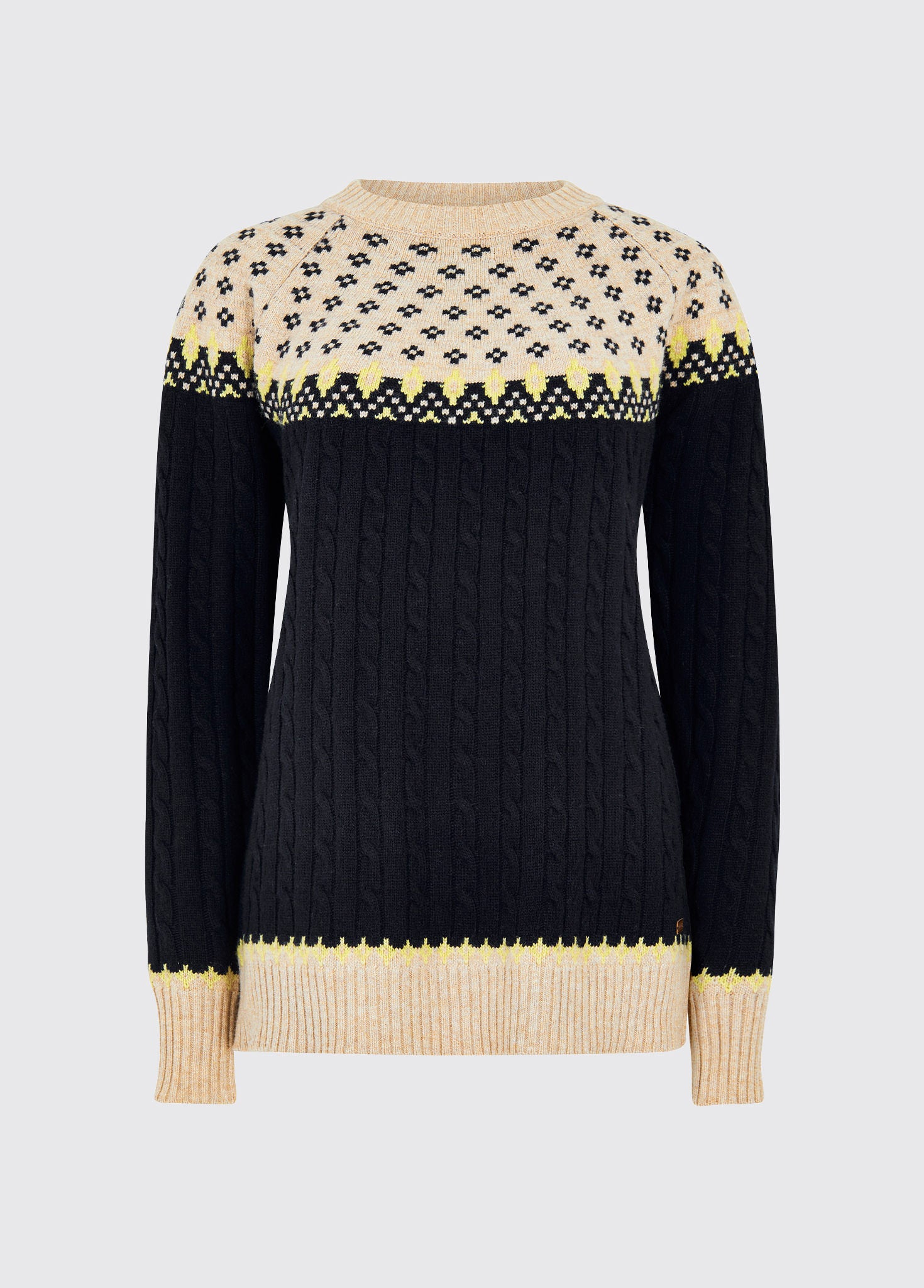 - Distinctive jacquard knit Fair Isle pattern is combined with traditional cable stitches for a unique look