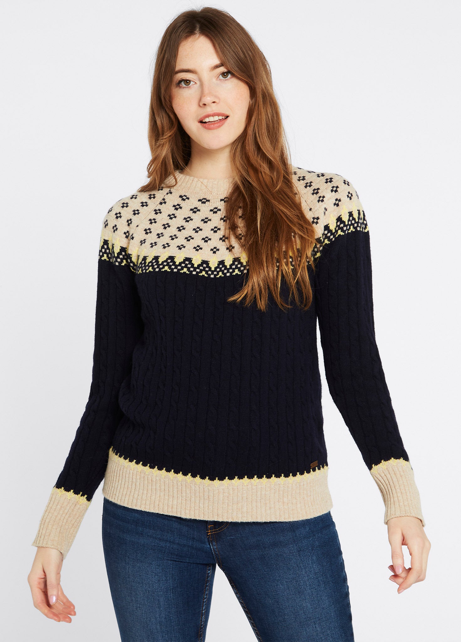 Thornfield women’s chunky knit with Fair Isle pattern in navy