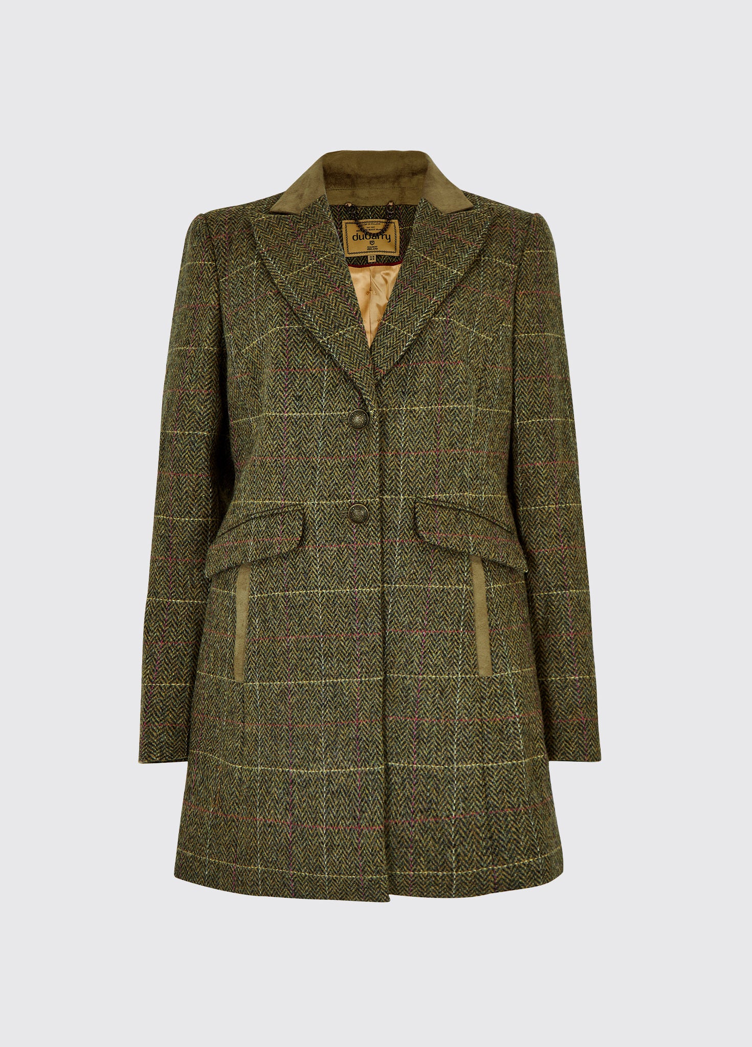 Bring an easy touch of elegance to any outfit with our Treefern tweed. Falling to finger-tip length, the sleeves have smart button fastenings and pockets are trimmed with suede. Teflon® coating protects from everyday splashes and marks, giving the hardwearing tweed an extra protective layer. A racecourse winner matched with Dubarry boots and crisp shirting but also ideal about town, slipped over jeans and a sweater, with an ankle length boot.