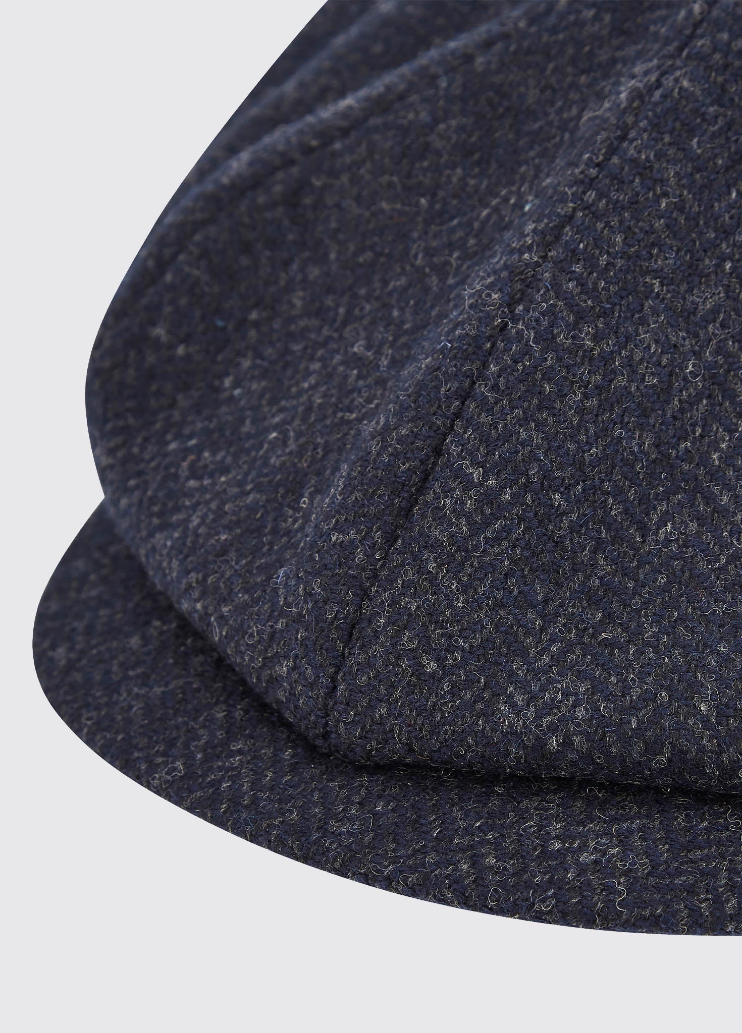 Tweed flat cap with a traditional peak made up of eight panels joined by a central button. Available in a choice of different colour tweeds.
