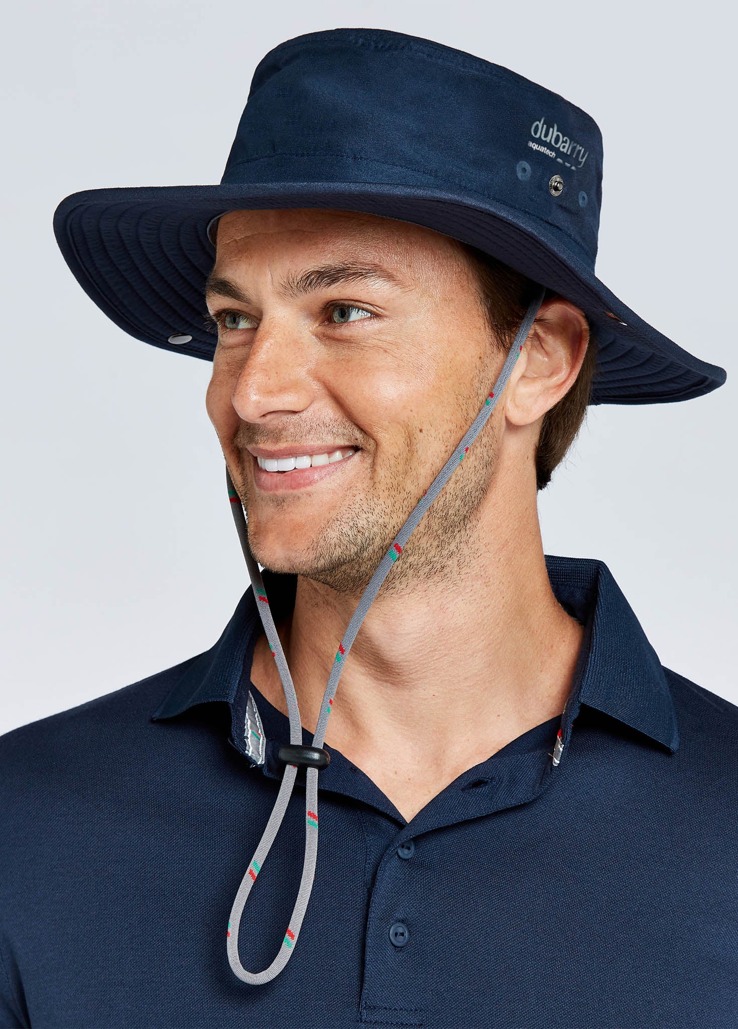 Wide-brim sun hat designed specifically for boating. Lightweight, water-repellent, quick-drying fabric. UPF-50 sun protection. Easily adjustable retention cord.