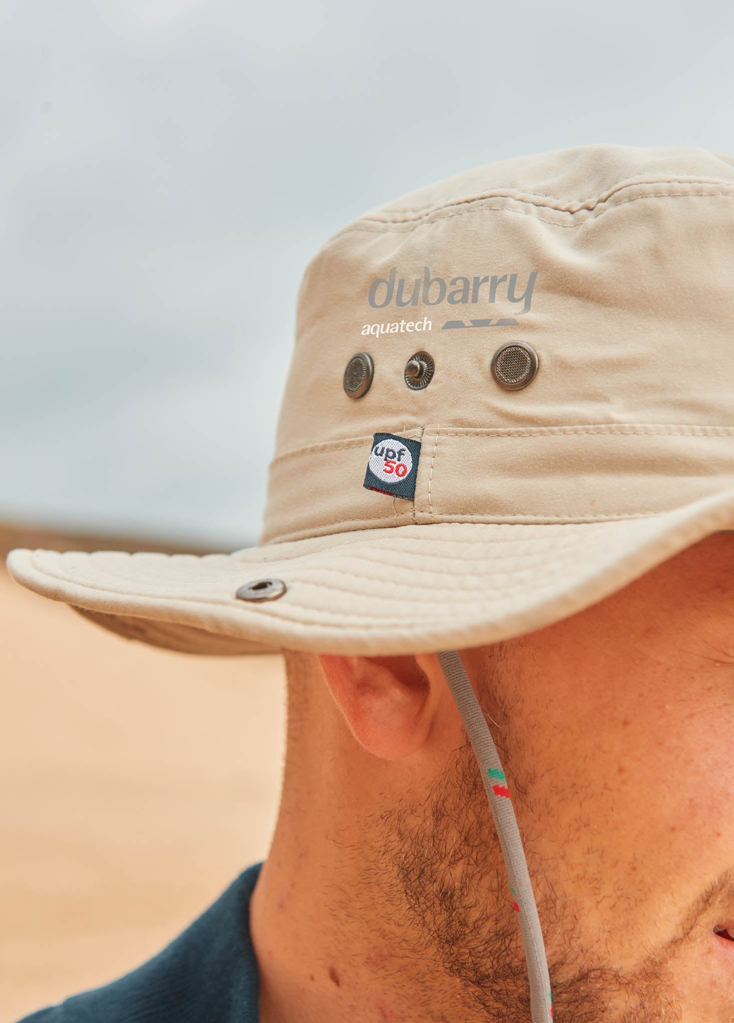 Wide-brim sun hat designed specifically for boating. Lightweight, water-repellent, quick-drying fabric. UPF-50 sun protection. Easily adjustable retention cord.